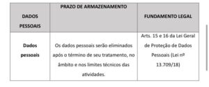 assim estabelecer. Findo o prazo e a necessidade legal, os dados devem ser excluídos